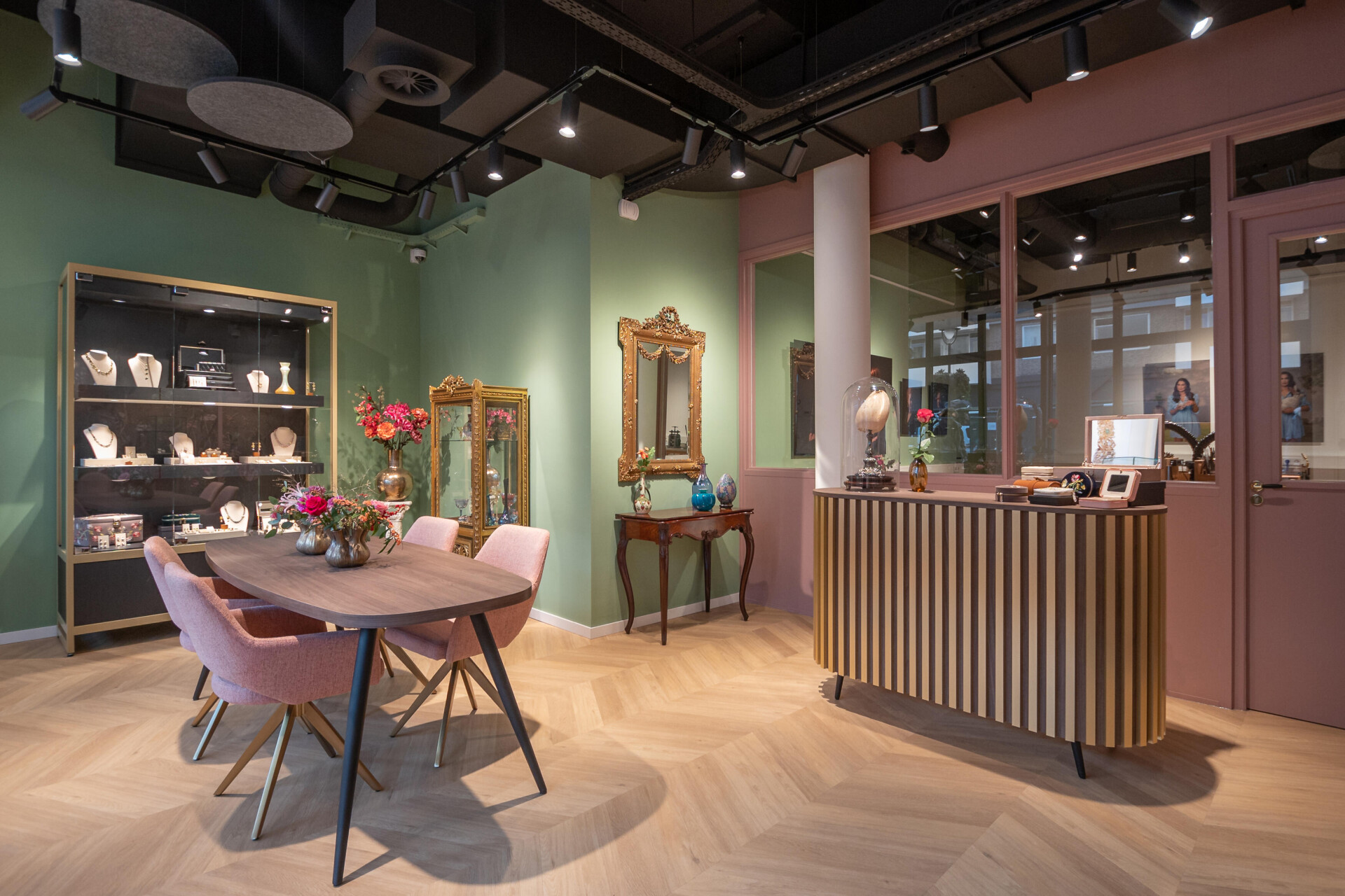 Hoogenboom & Bogers Fine Jewellery entwerfen und fertigen ihre Schmuckstücke in ihrem eigenen Laden und Atelier. Der Laden ist mit verschiedenen modularen Designmöbeln von Forbettershops eingerichtet, wodurch der Raum effizient genutzt wird.
